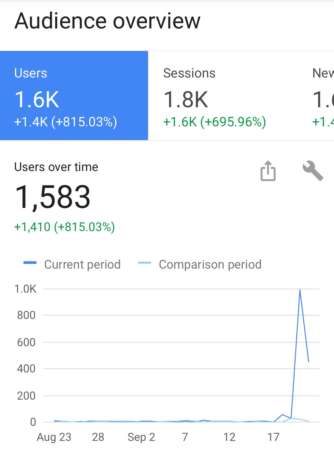 Day 1 of the launch, I received 1000 new site visitors with around 18% converting into new users.