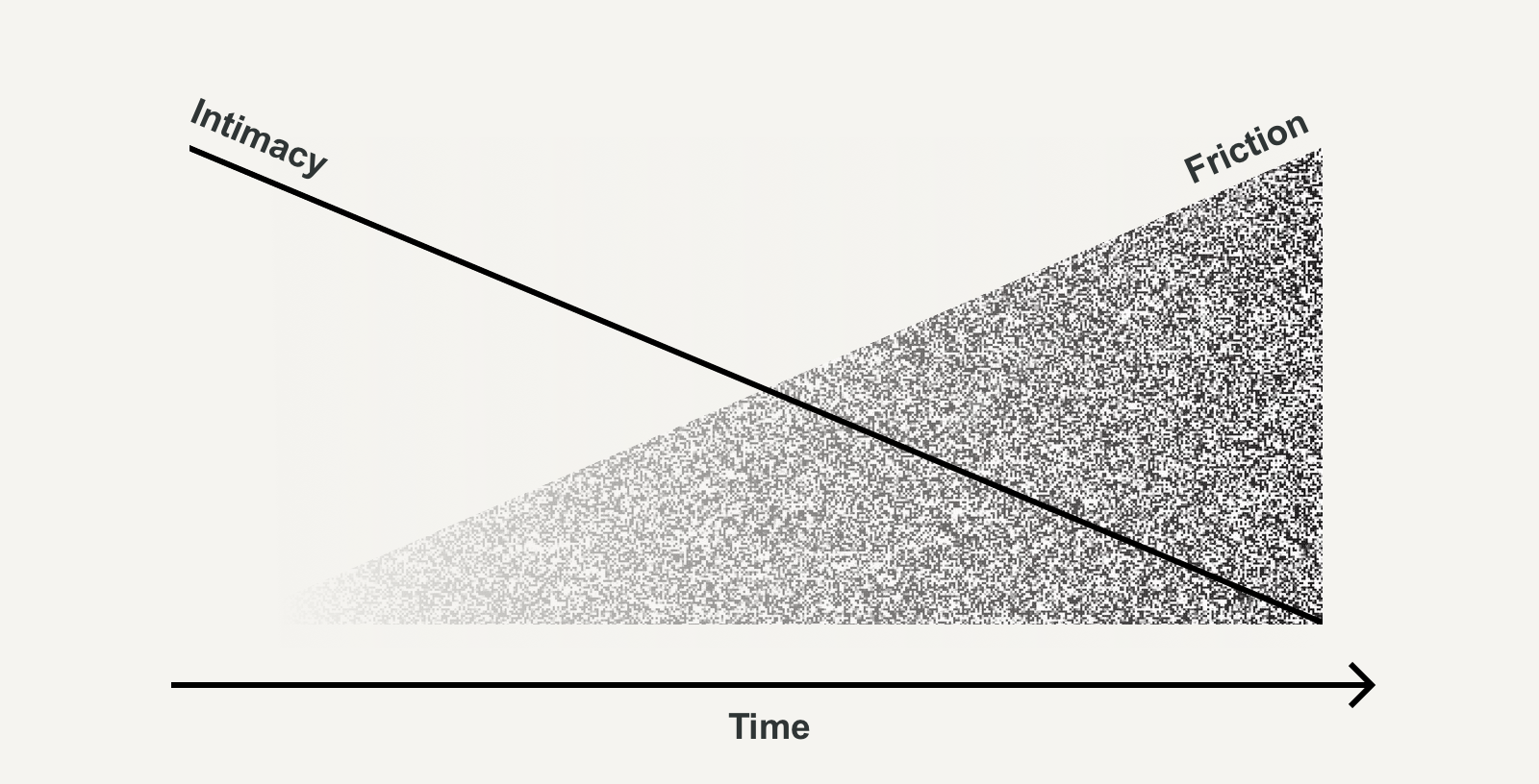 As the group gets bigger there are more people to please, and so more people to consider how they’ll receive what you’re saying. Scale directly affects how intimate a conversation is. As the number of people listening increases, a topic gets more and more diluted or the conversation becomes more and more generic.